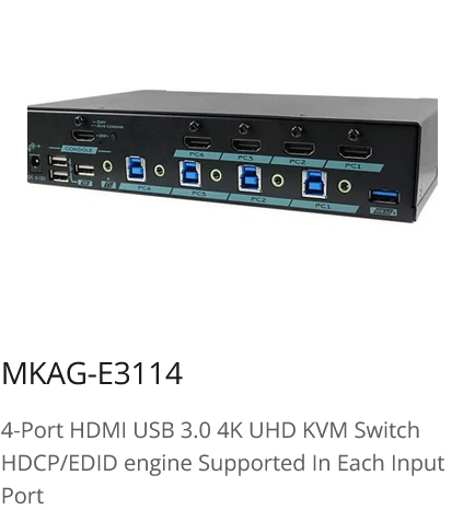 4 Ports 8K HDMI® Dual Monitor KVM Switch with USB 3.2 Gen 2, HDCP Engine, EDID Management, Serial Control , Audio Embed / Extract